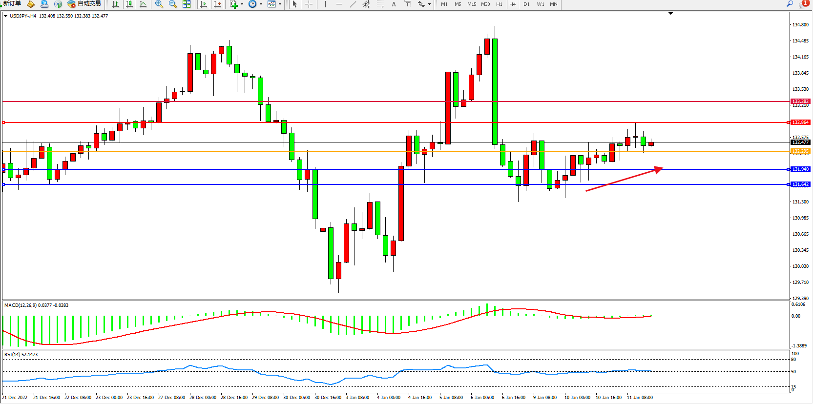 美元兑日圆维持132.477附近震荡,日本央行不太可能调整负利率政策。只要债券收益率仍然面临强劲的上行压力,就很难阻止收益率曲线控制政策的裂痕扩大。