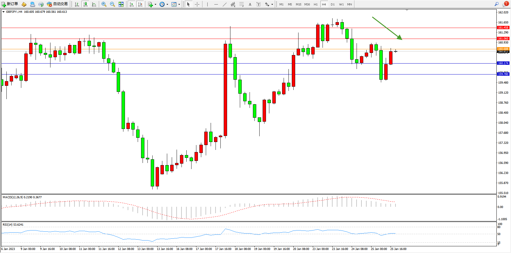交易策略:160.688下方看跌,目标160.174、159.780