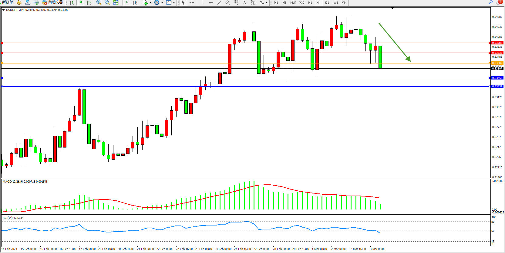 交易策略:0.93582下方看跌,目标0.93458  0.93331