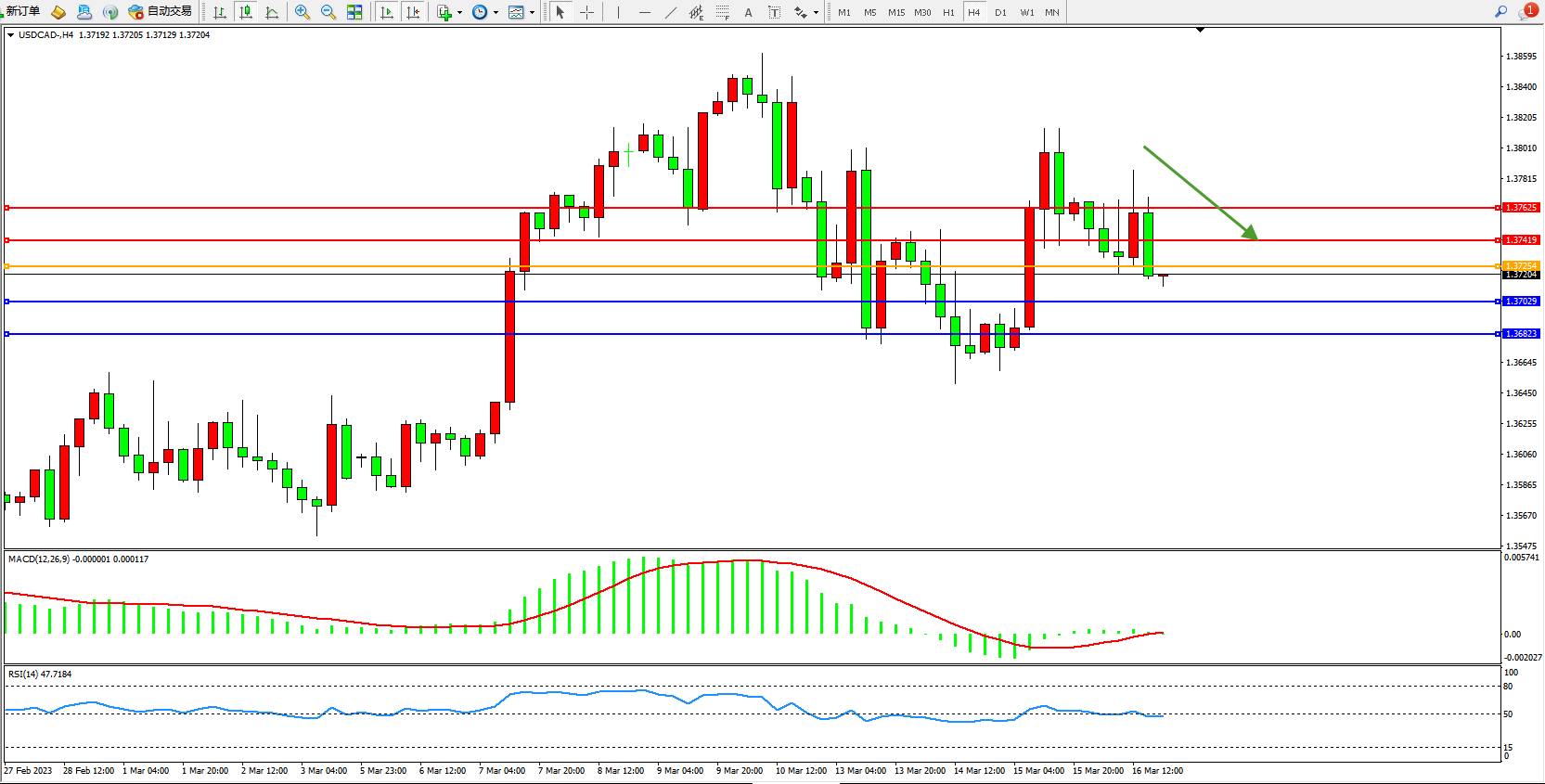 交易策略:1.37254下方看跌,目标1.37029 1.36823
