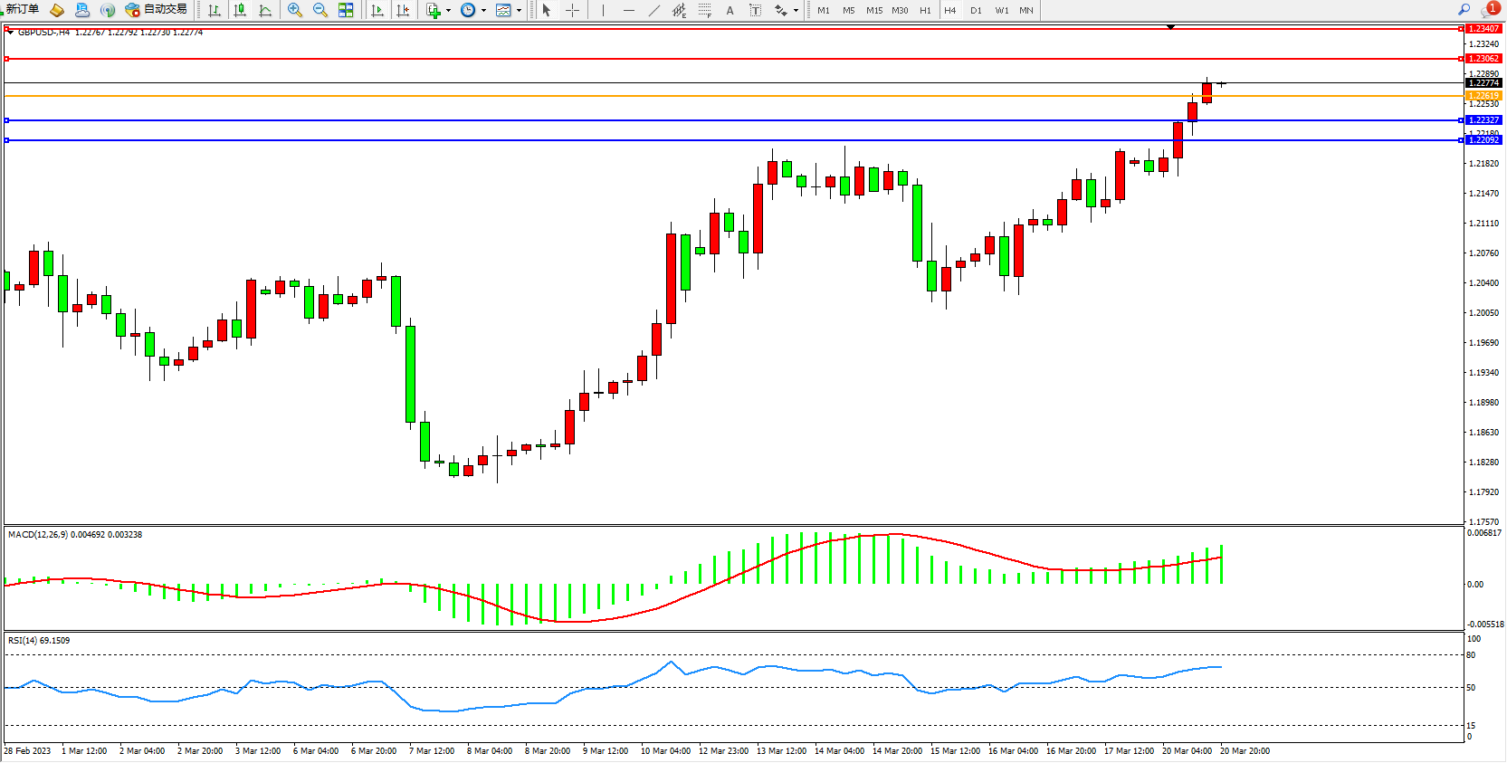 备选策略:1.22619上方看涨,目标1.23062  1.23407