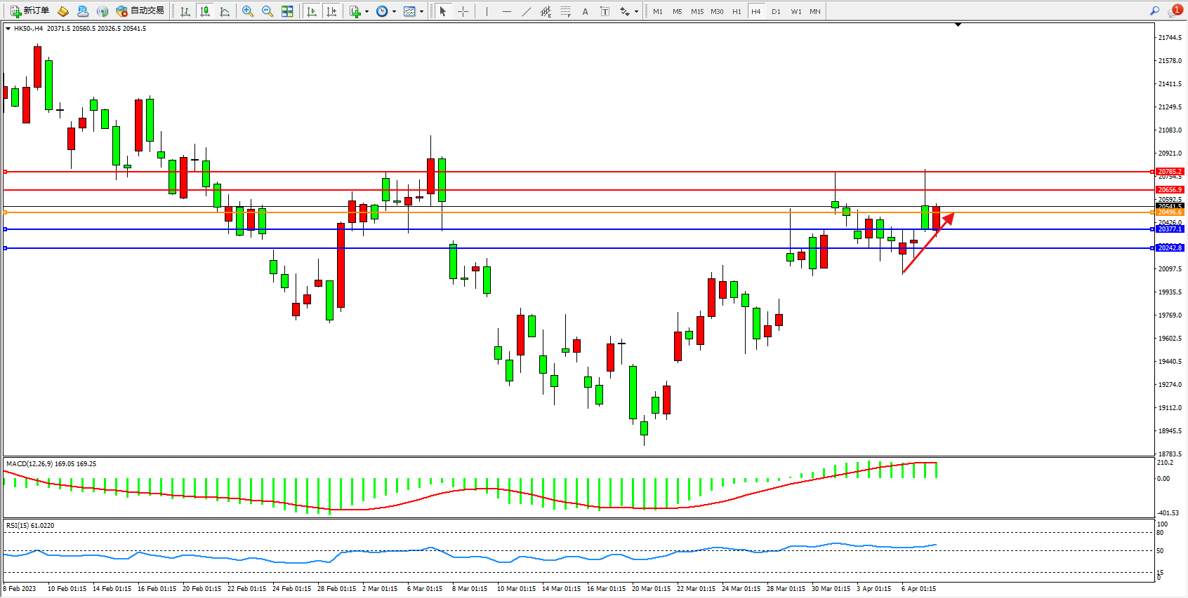 恒指HK50 4小时图