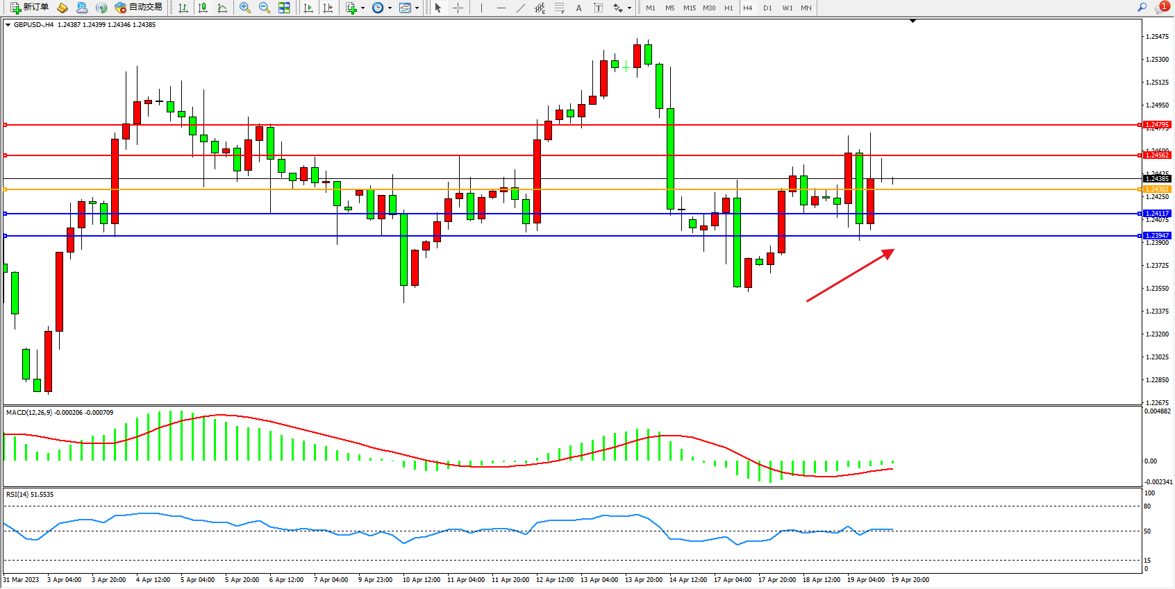 交易策略:1.24302上方看涨,目标1.24562 1.24795