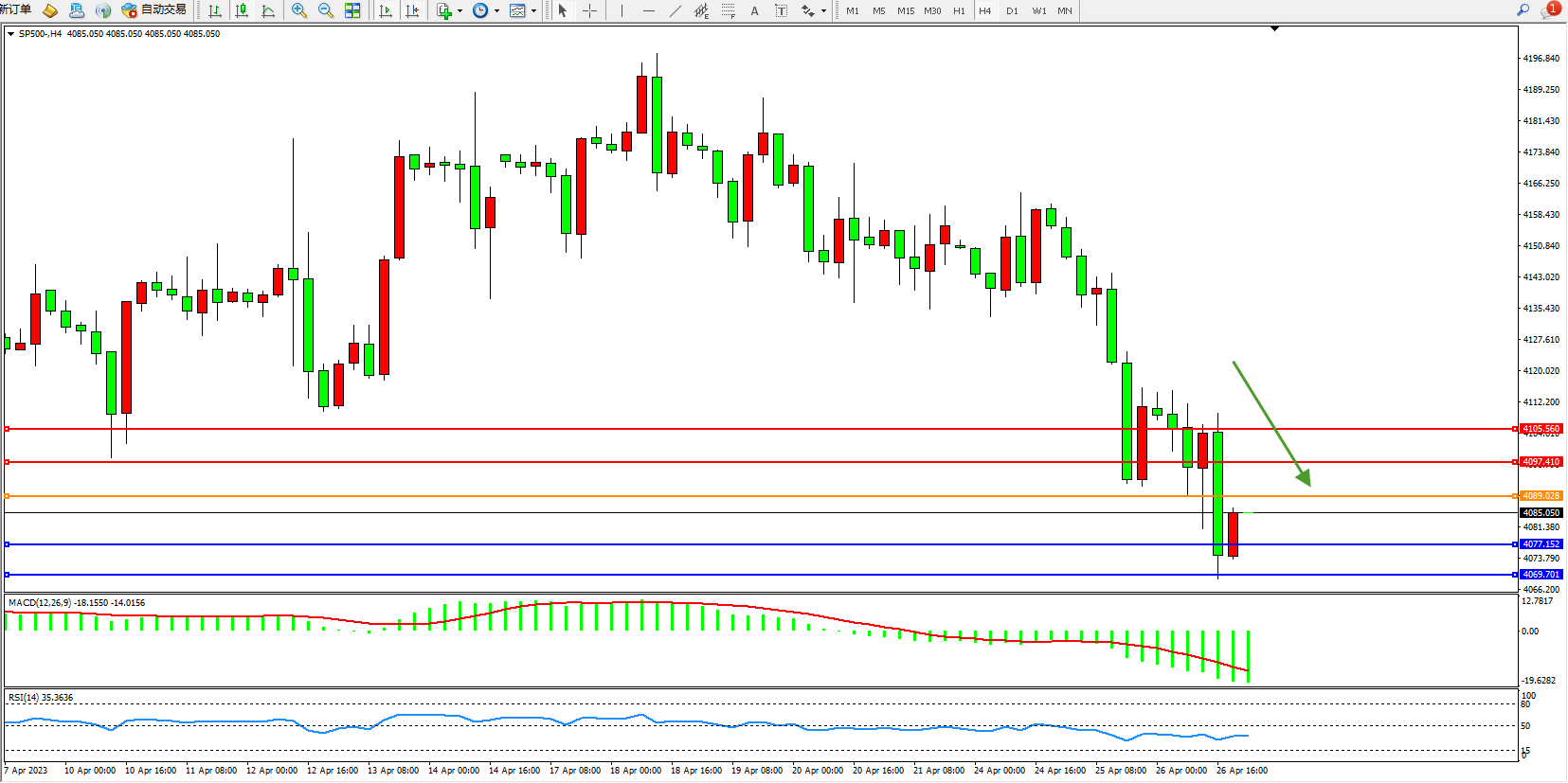 标普SP500——4小时K线图显示: