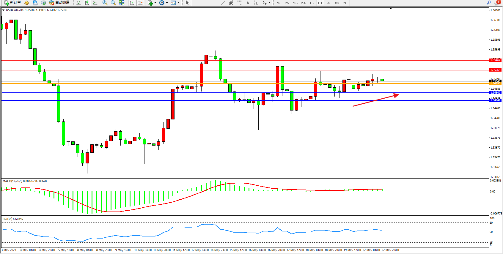 美元加元USDCAD——4小时K线图显示: