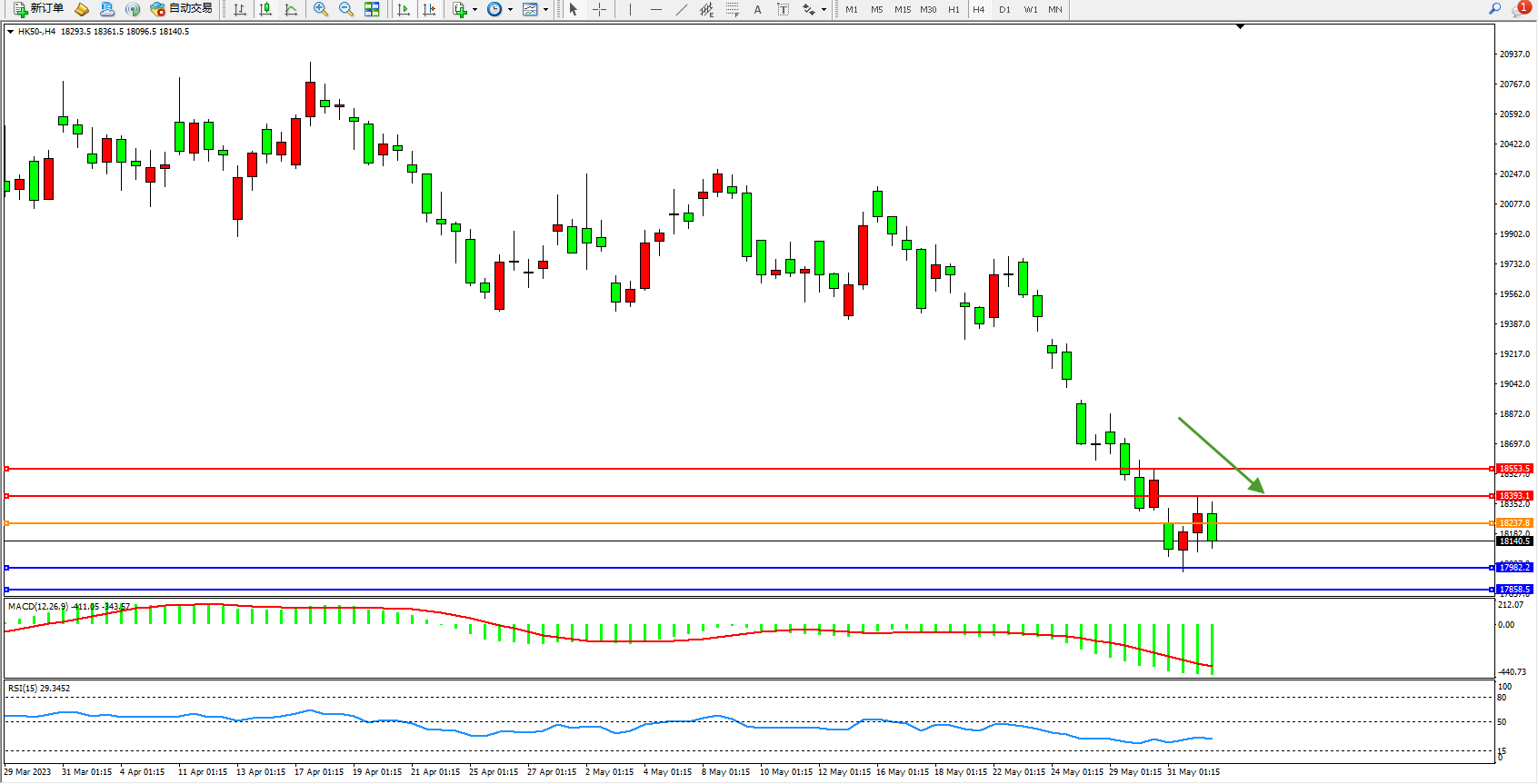 恒指HK50 4小时图