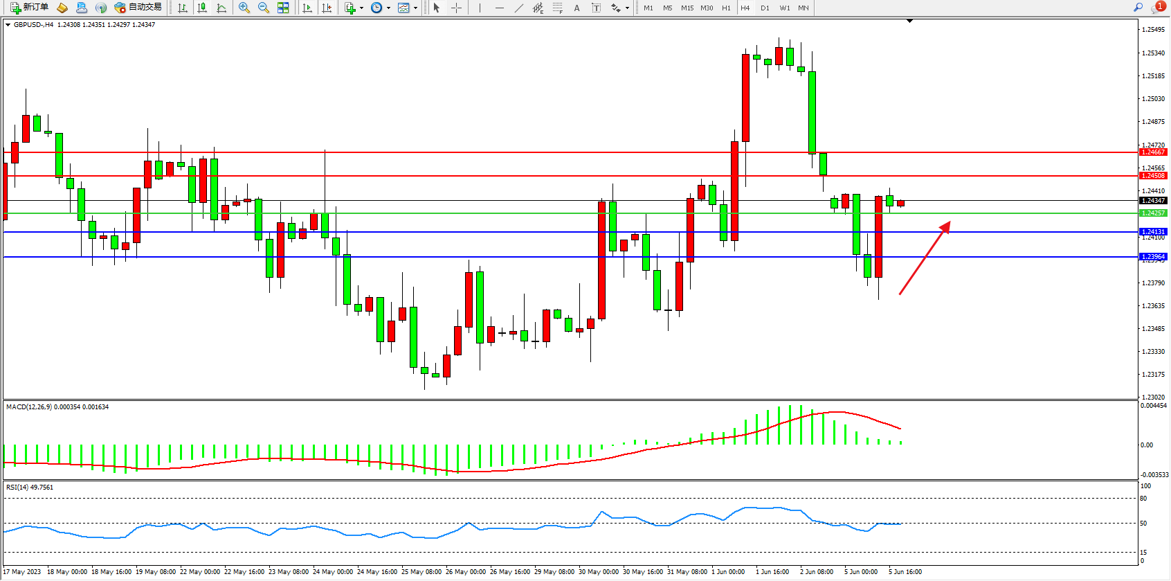 交易策略:1.24257上方看涨,目标1.24508  1.24667