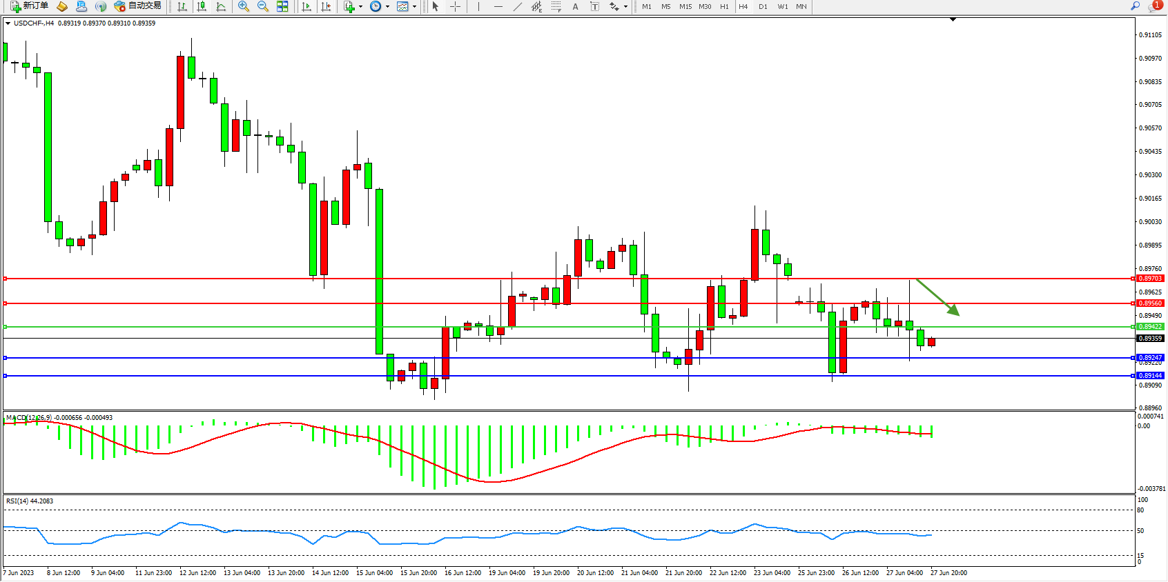 交易策略:0.89422下方看跌,目标0.89247 0.89144