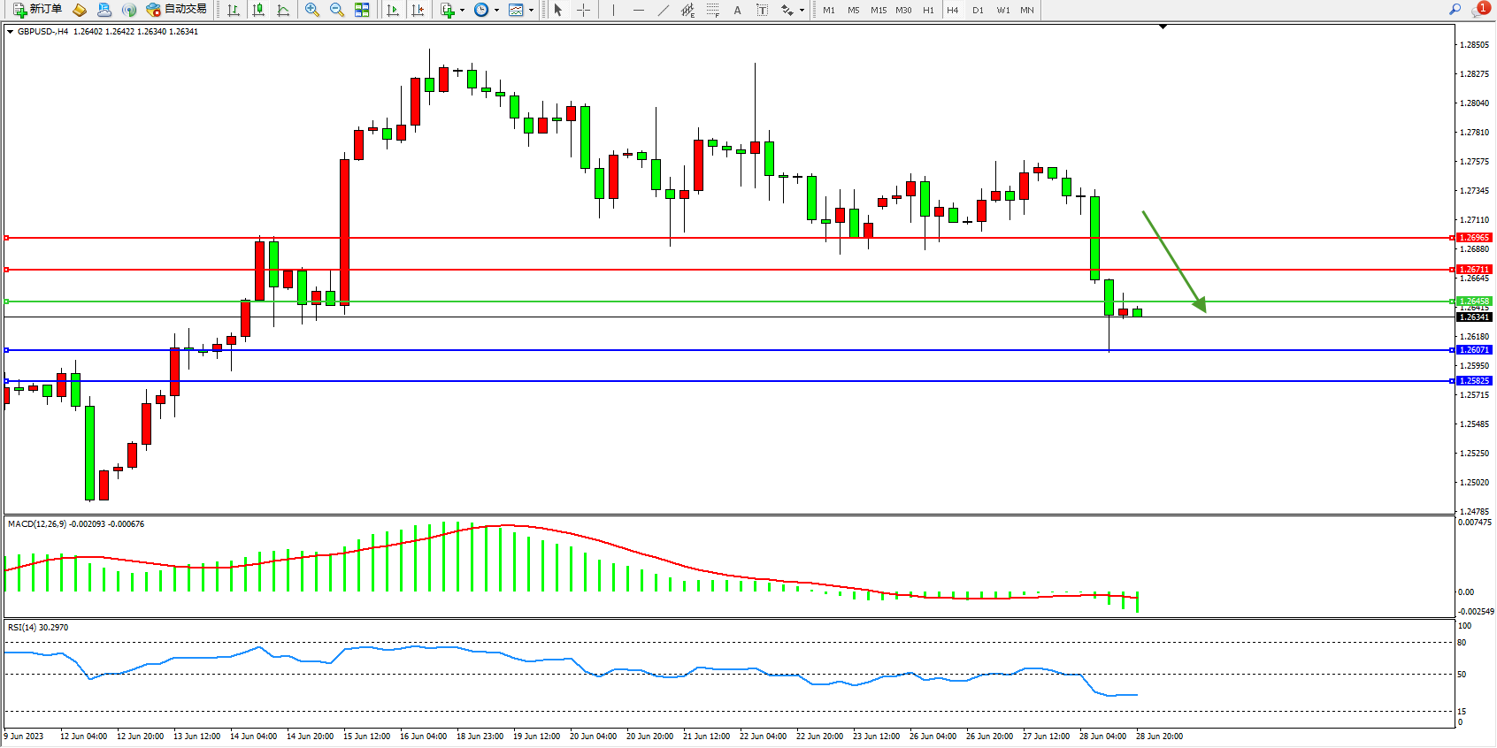 交易策略:1.26458下方看跌,目标1.26071 1.25825