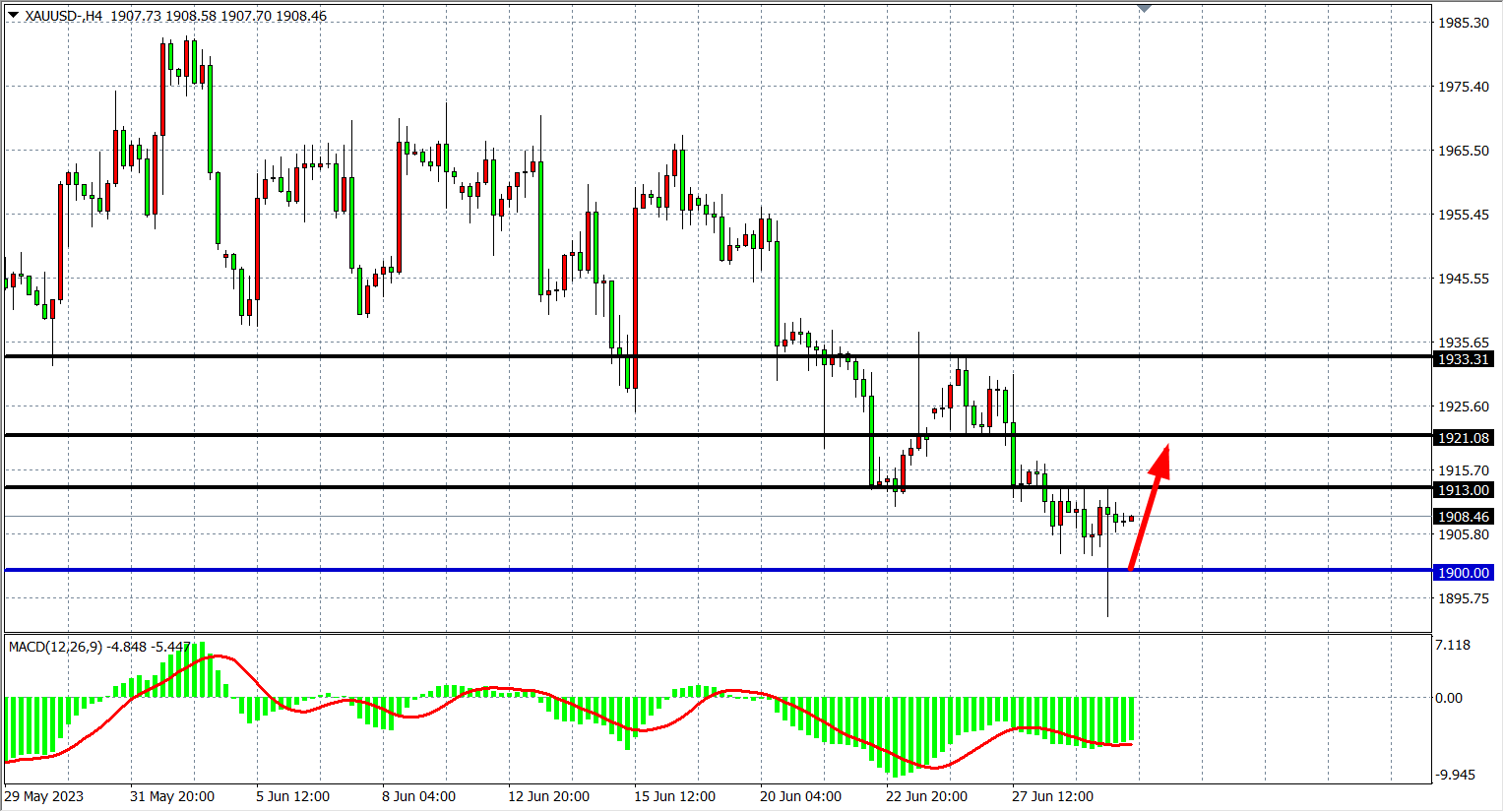 周四(6月29日)受一系列强劲美国经济数据影响,现货黄金一度失守1900大关