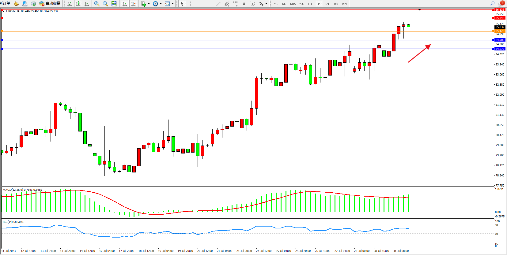 布油UKOil——4小时K线图显示: