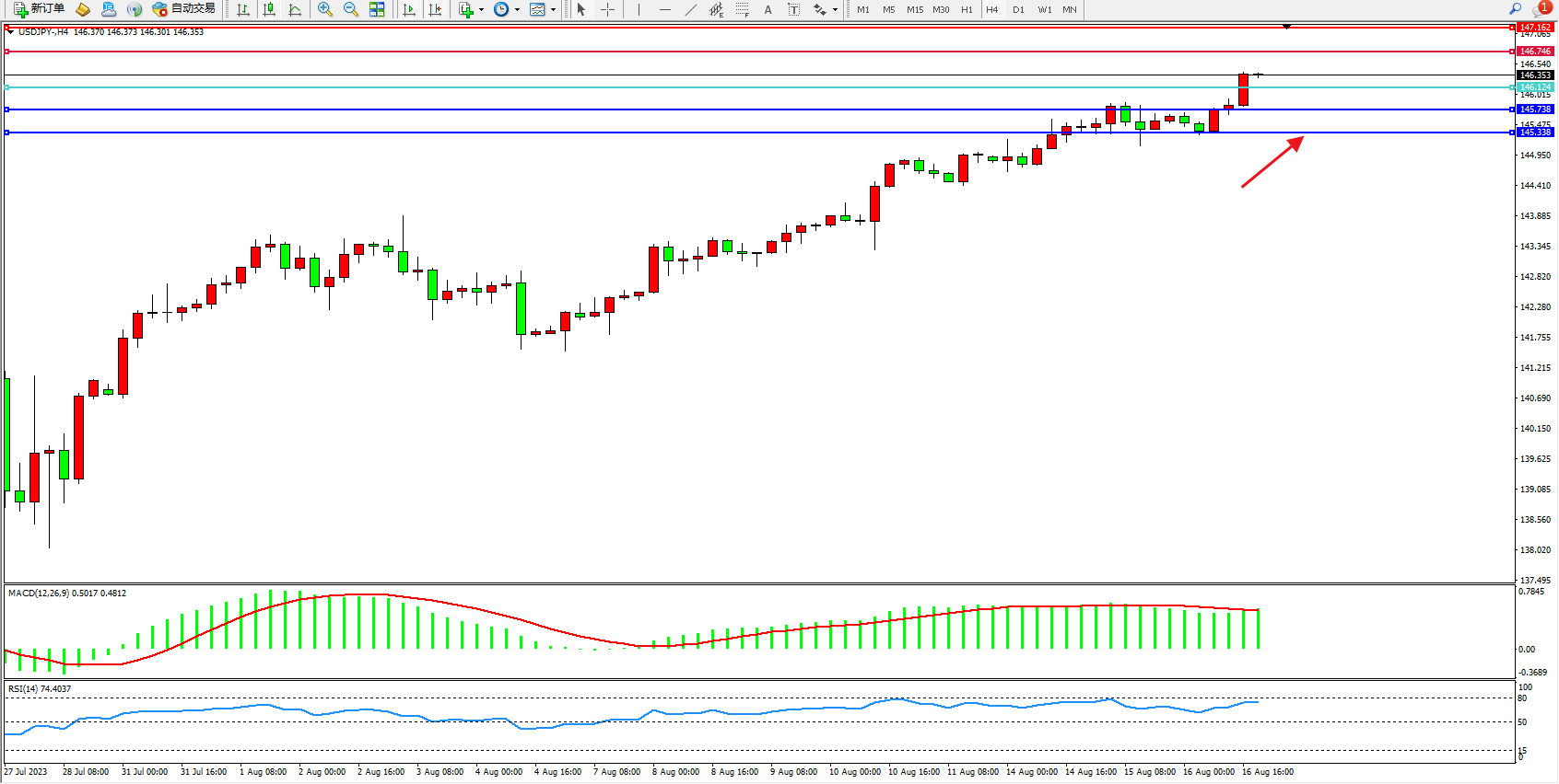 阻力位:146.746  147.162