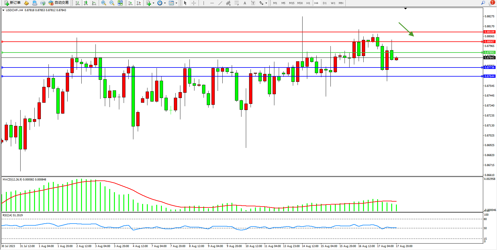 交易策略:0.87893下方看跌,目标0.87736 0.87644