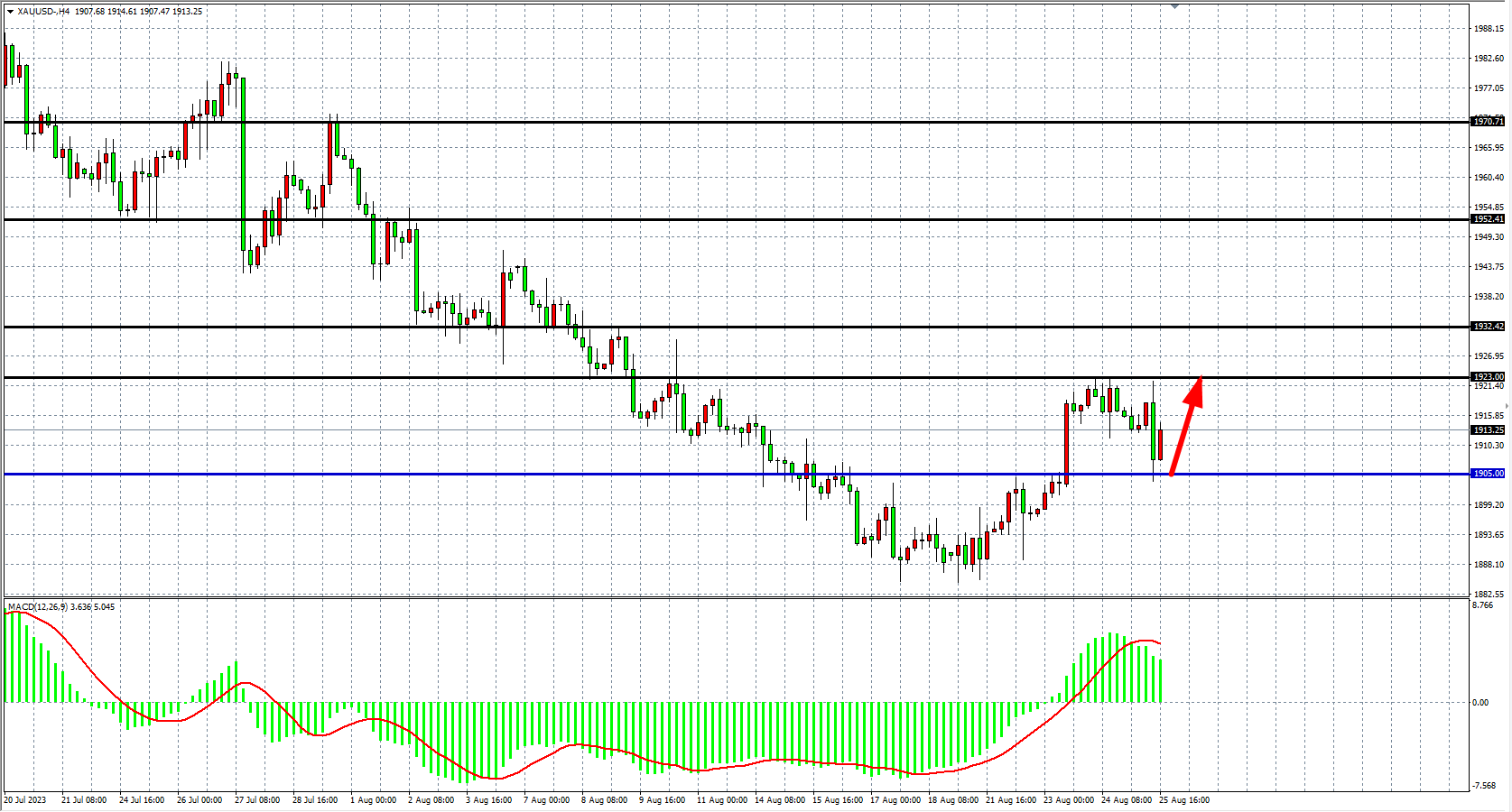 4小时图看,黄金在1923受阻后再度回落1905附近受支撑反弹,MACD维持在零轴上,走势进入震荡,支撑关注1905附近,阻力关注上方1923-1932附近。
