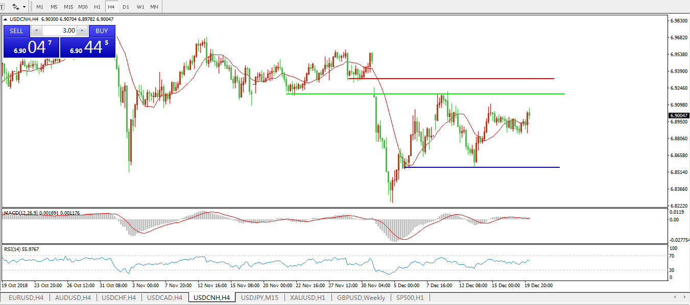备选策略: 在6.9200之上,看涨,目标价位为6.9300,然后为6.9557。