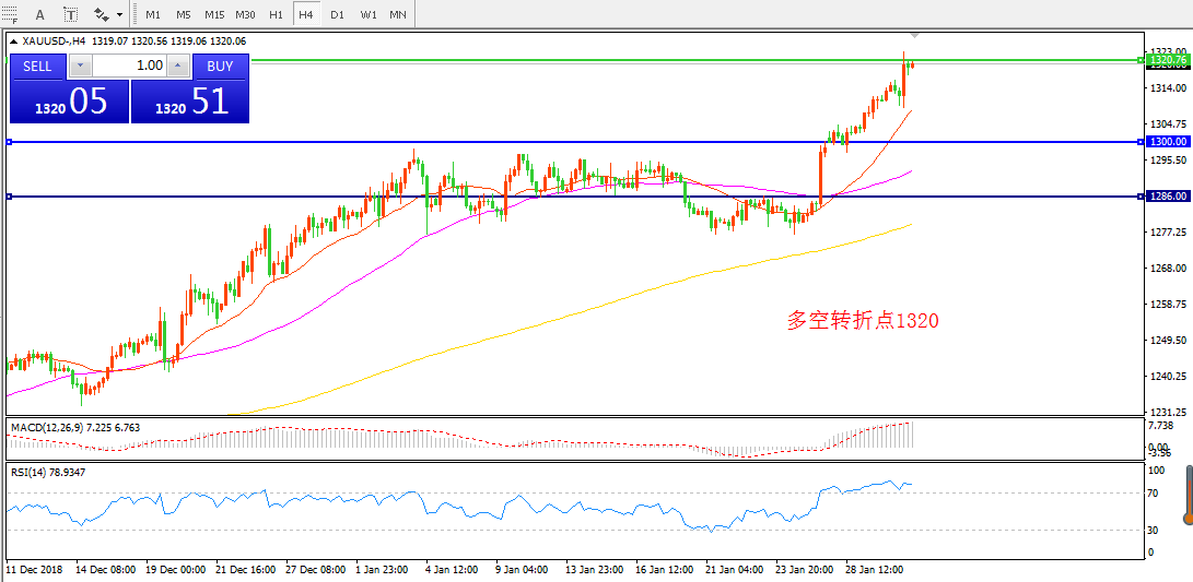 交易策略:在1320.00之上看涨,目标1330.00 1345.00