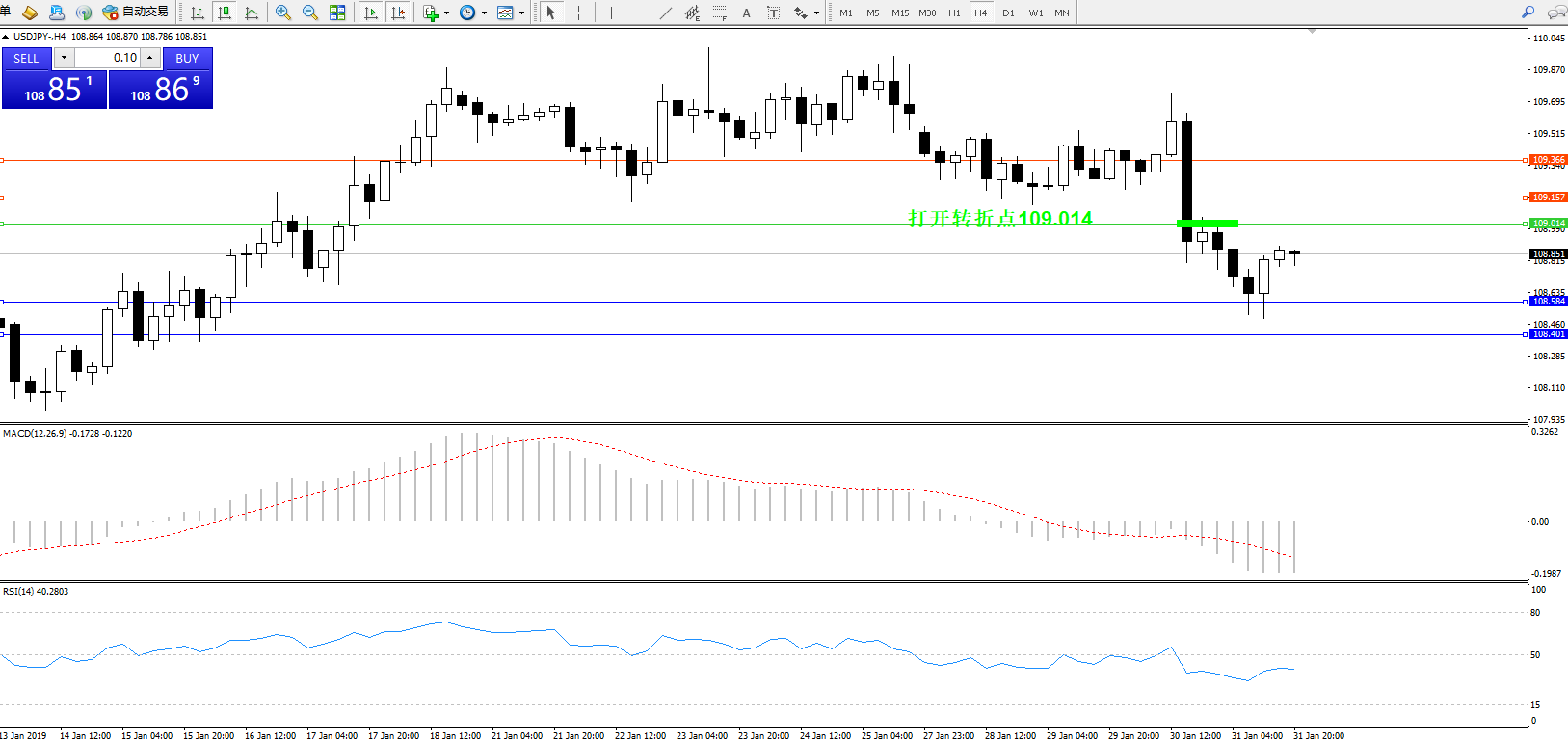 交易策略:109.014下方看跌,目标108.584108.401