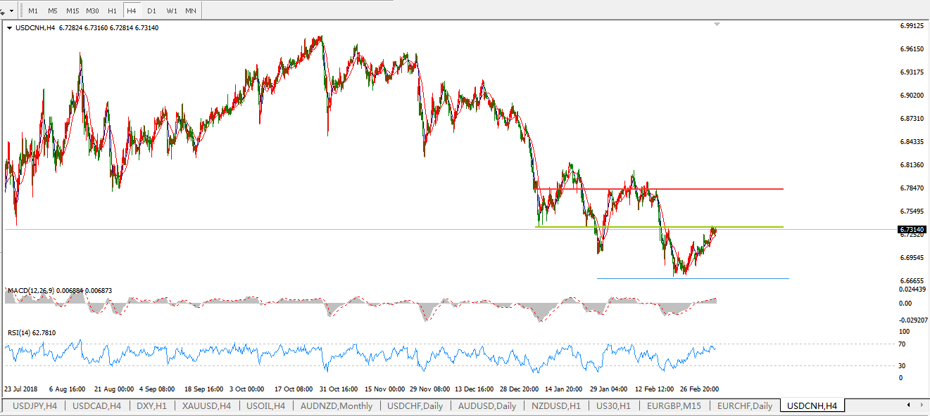 美元兑人民币USDCNH  4小时图: