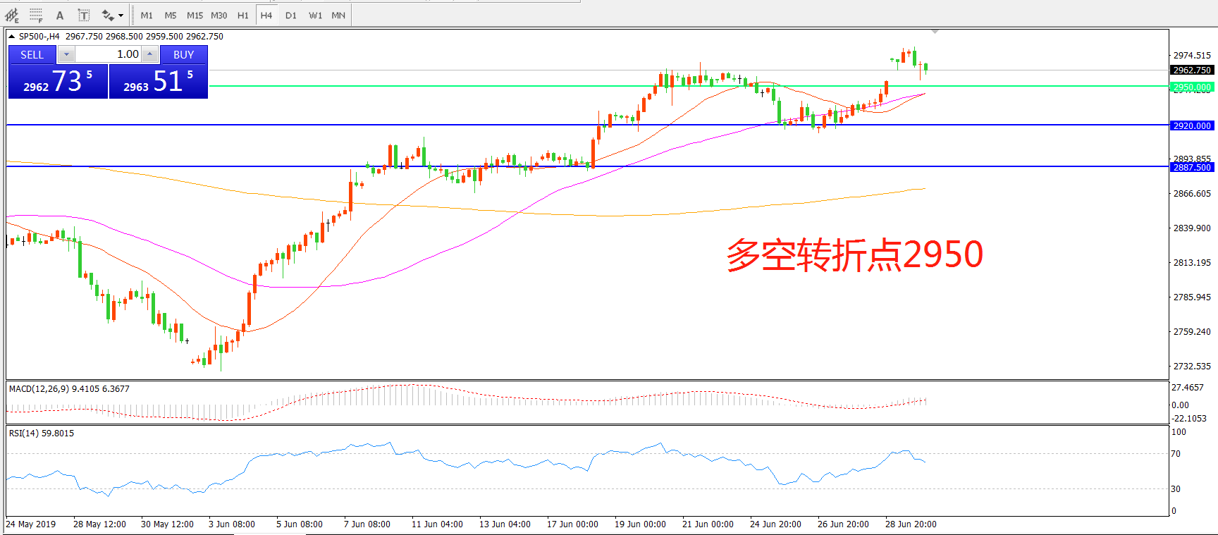 多空转折点:2950.00