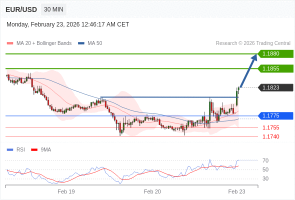 在 1.1775 之上,看涨,目标价位为 1.1855 ,然后为 1.1880 。