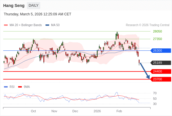 交易策略: 在 26300 之下,看跌,目标价位为 24400 ,然后为 23700 。