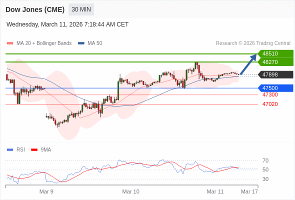 在 47500 之上,看涨,目标价位为 48270 ,然后为 48510 。