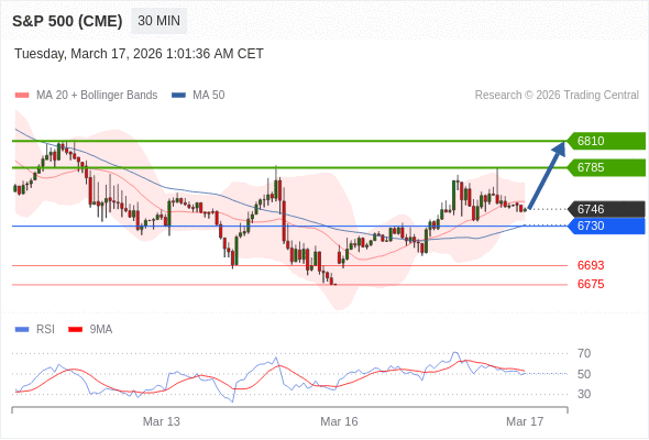 在 6730 之上,看涨,目标价位为 6785 ,然后为 6810 。