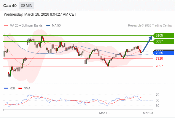 Cac 40 当日内: 目标位为8057。