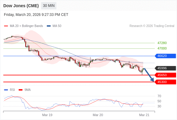 在 46620 之下,看跌,目标价位为 45650 ,然后为 45300 。