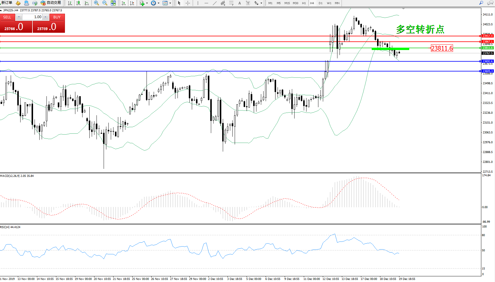日经225指数1219日(周四)收盘下跌52.43点,跌幅0.22%,报23882.00点。北京时间1219(周四)10:45,日本央行宣布维持-0.1%利率不变,因政府推出的刺激计划、中美贸易谈判取得进展以及全球经济放缓触底的迹象提振了经济前景。中美达成第一阶段贸易协议、全球制造业数据企稳、英国脱欧前景改善,给了日本央行行长黑田东彦时间来评估首相安倍晋三1200亿美元的财政刺激方案将如何提振经济。销售税上调、出口低迷以及超级台风造成的破坏令日本经济眼下的处境不佳。