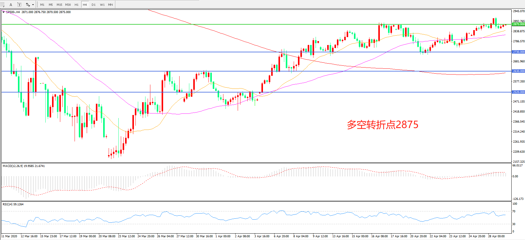 多空转折点:2875.00