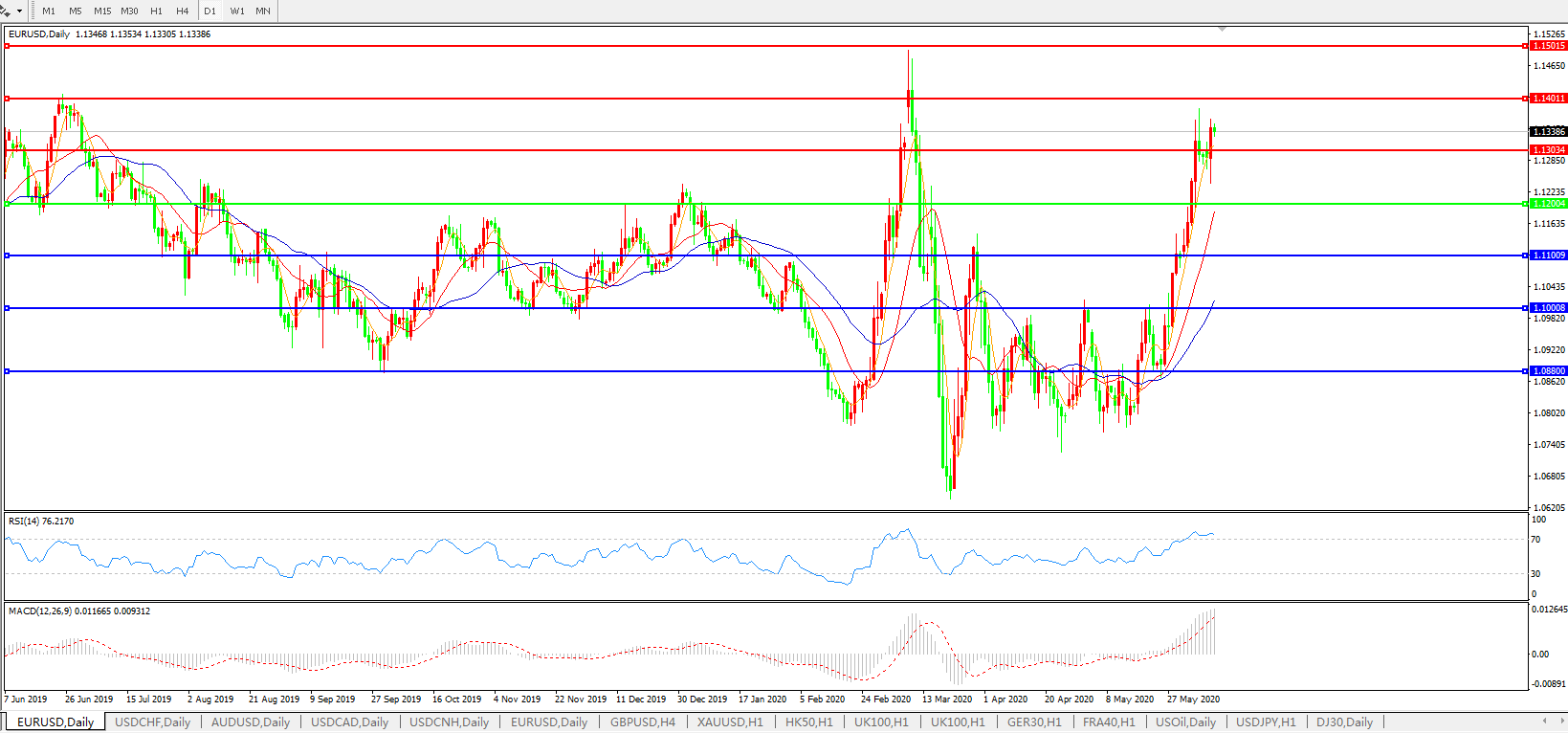 欧元兑美元EURUSD 日线图: