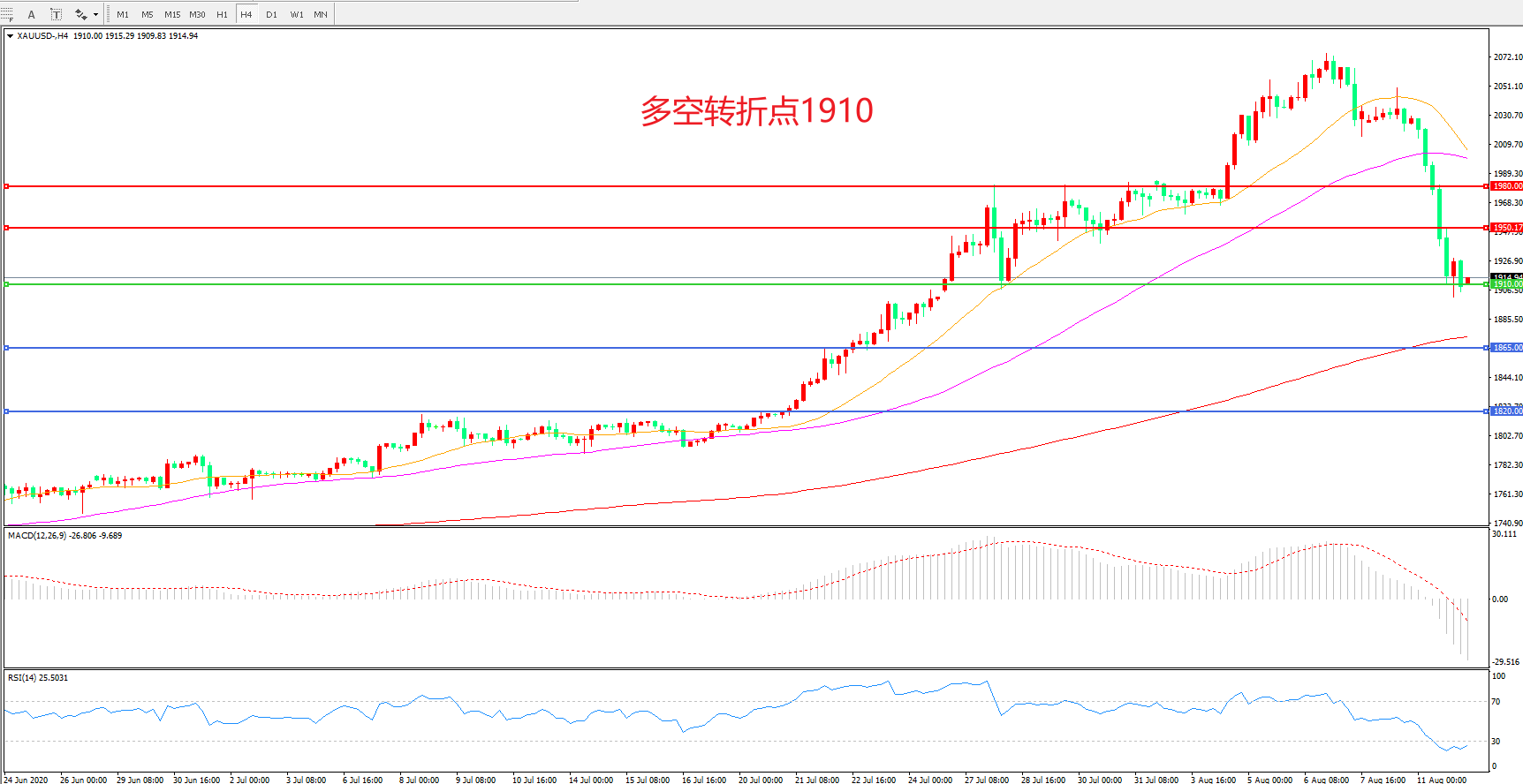 多空转折点:1910.00