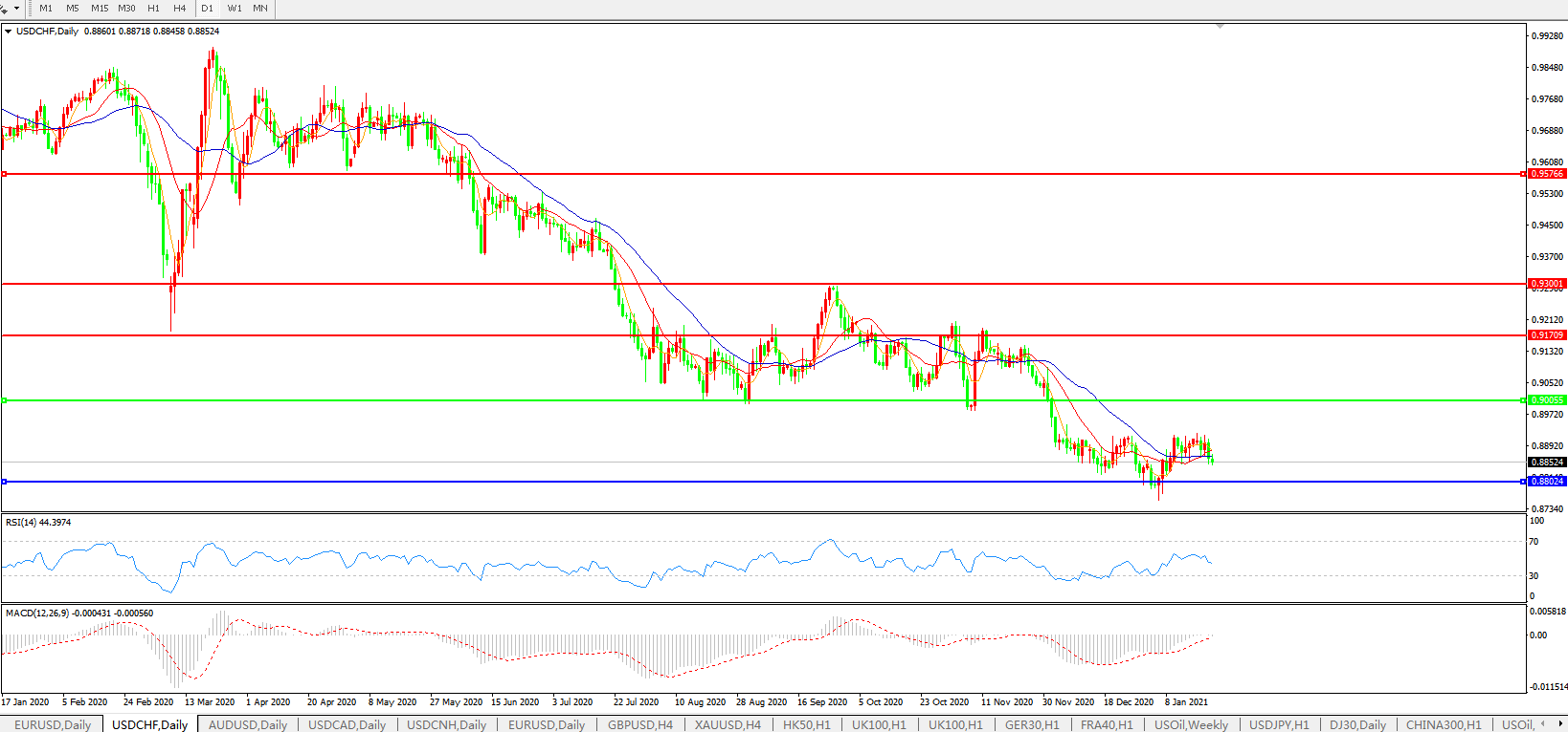 美元兑瑞郎USDCHF 日线图:
