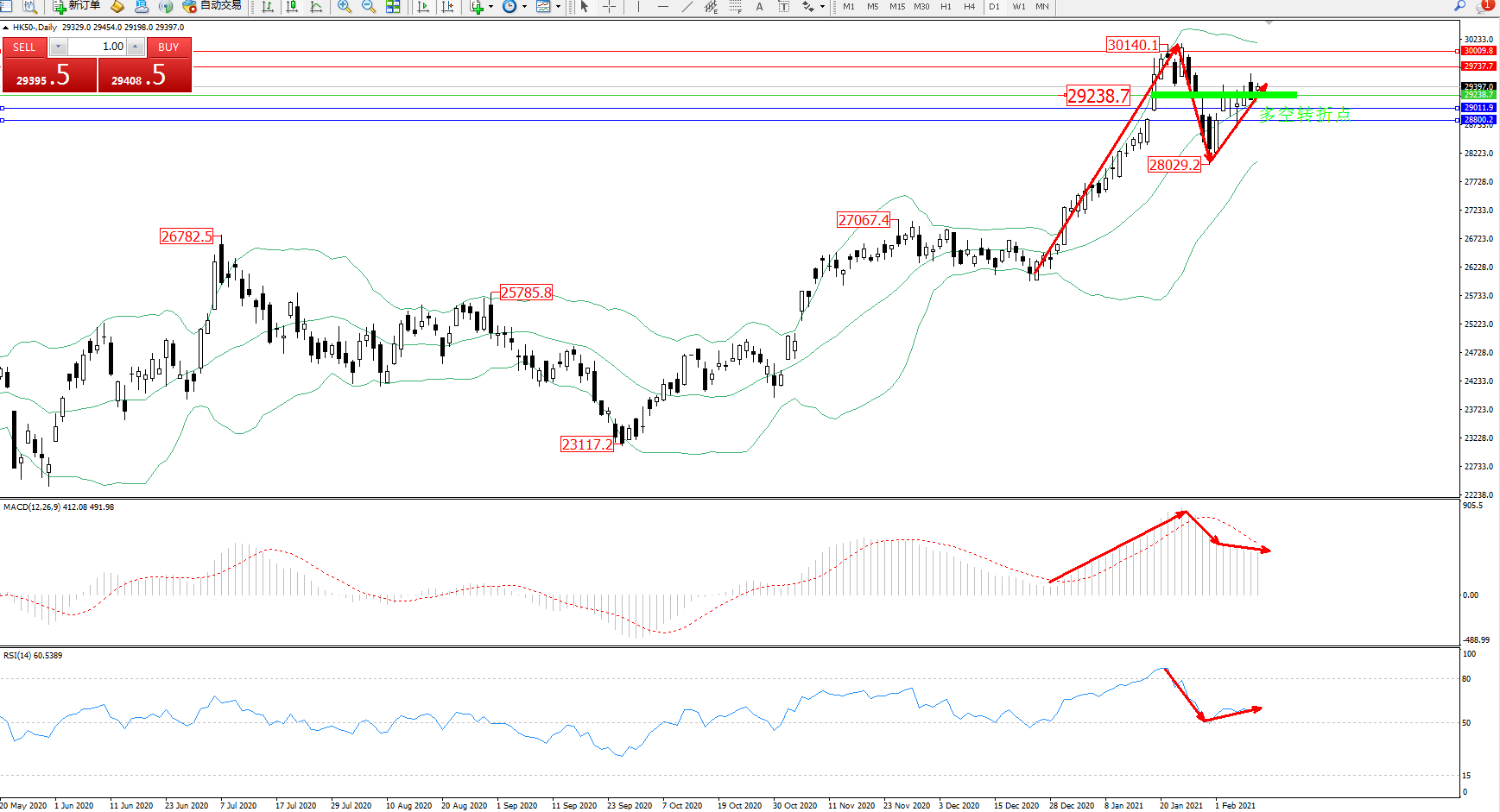 香港恒生指数2月9日(周二)收盘上涨156.72点,涨幅0.53%,报29476.19点;港股主要指数全线收涨,恒指盘中几度转跌,恒生科技指数涨2.1%报9961点。假日概念股手游、影视娱乐、航空等板块持续活跃;快手上市第三日大涨近16%,市值超1.4万亿港元,五菱汽车飙涨近23%。临近假期,市场交投出现明显萎缩,大市成交额为1499.38亿港元,较上一交易日缩量400亿港元。港交所宣布委任欧冠昇先生由2021年5月24日起出任香港交易所集团行政总裁,为期三年至2024年5月23日止,有关委任待取得证券及期货事务监察委员会根据《证券及期货条例》第70条批准后才生效。待取得该批准后,欧冠昇先生亦将出任董事会的当然成员,于2021年5月24日生效。欧冠昇成为港交所自2000年合并及上市以来第四任,以及首位非华裔行政总裁。南方东英科创板50指数ETF(03109.HK)将于2月10日开始交易,这是首只在港交所上市的追踪科创板50指数的ETF。南方科创板50上市价格约为每单位15.6港元,每手交易为100单位,管理费为0.99%。自成立以来,3109.HK已获得9230万元人民币的初始投资。