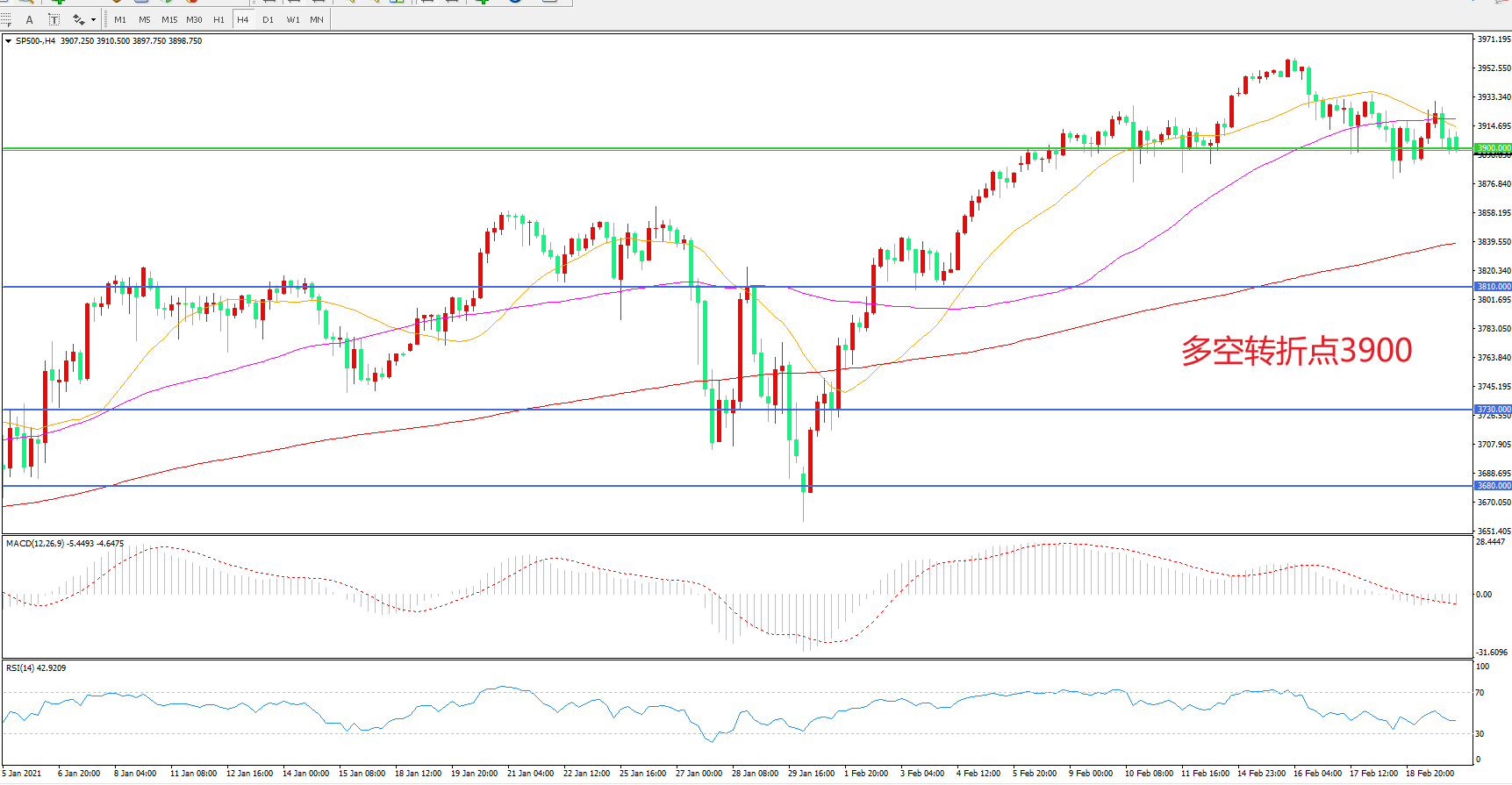 多空转折点:3900.00