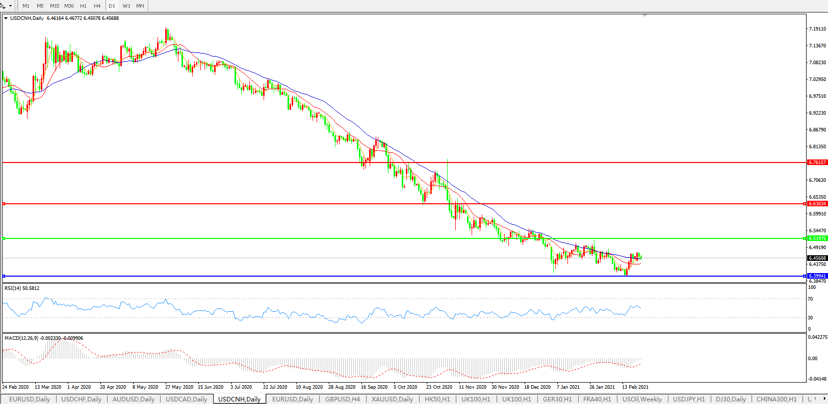备选策略: 在6.5200之上,看涨,目标价位为6.6300,然后为6.7615。