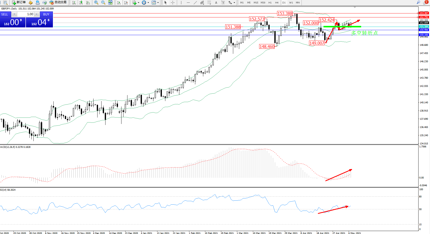 交易策略:151.388上方看涨,目标152.795、153.987