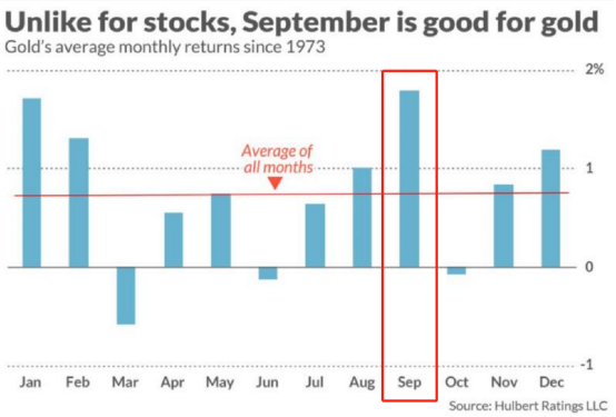 (9月通常为黄金一年中最好的表现月份,来自wind数据)