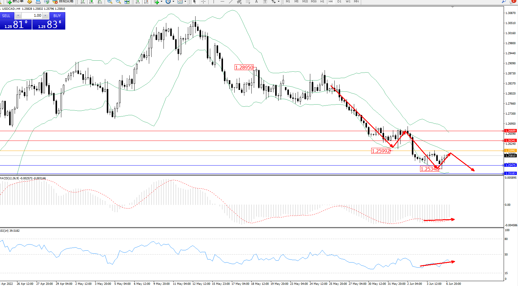 美元加元USDCAD——4小时K线图显示:
