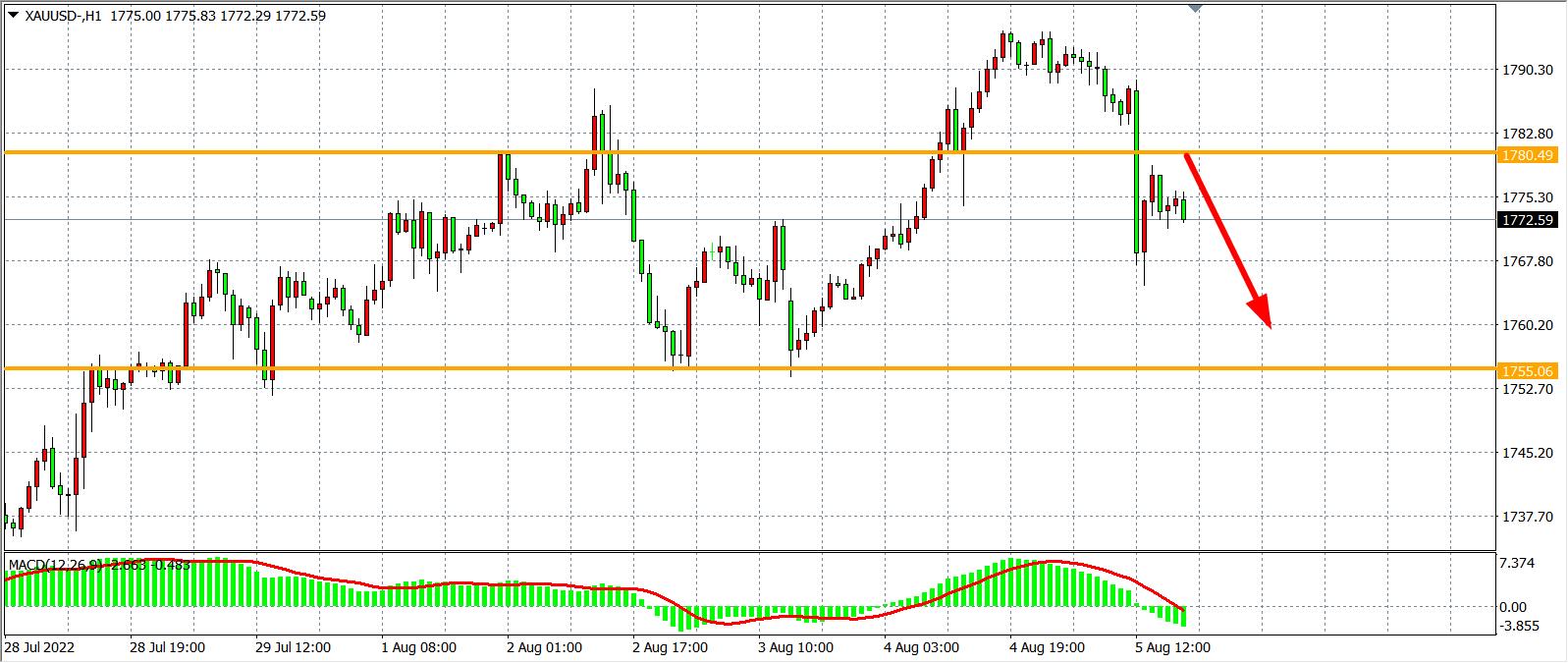 备选策略:在1780.00之下看跌,目标1755.00           1740.00