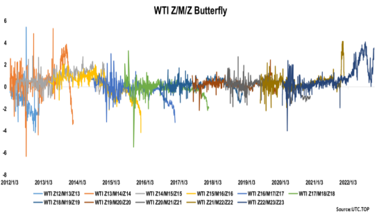 买入WTI DEC 22 VS JUN 23价差的CSO看涨期权(Calendar Spread Options),同时卖出WTI 2212-2306-2312蝶式期货价差。